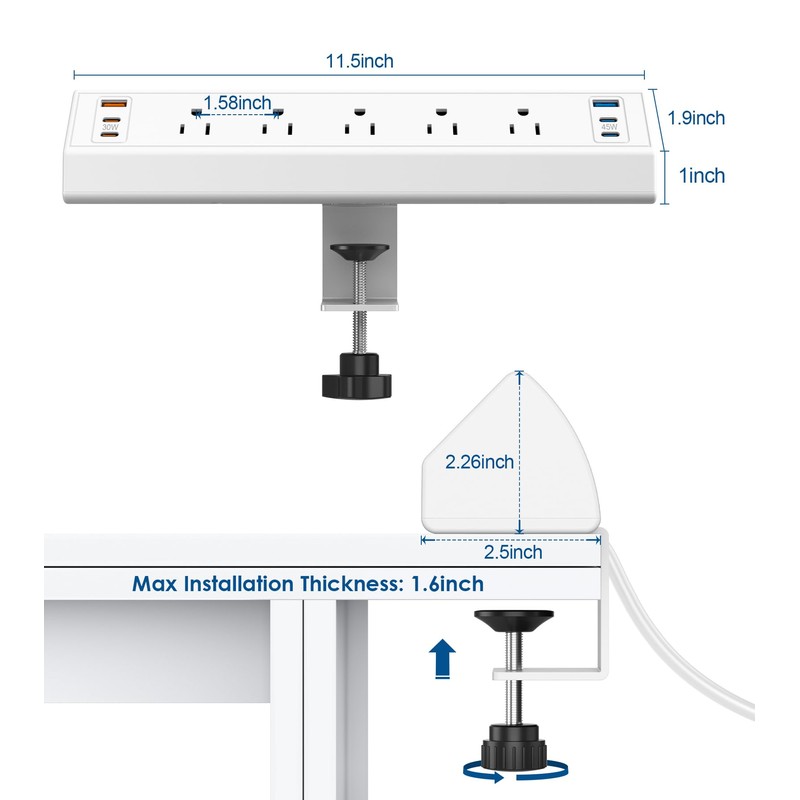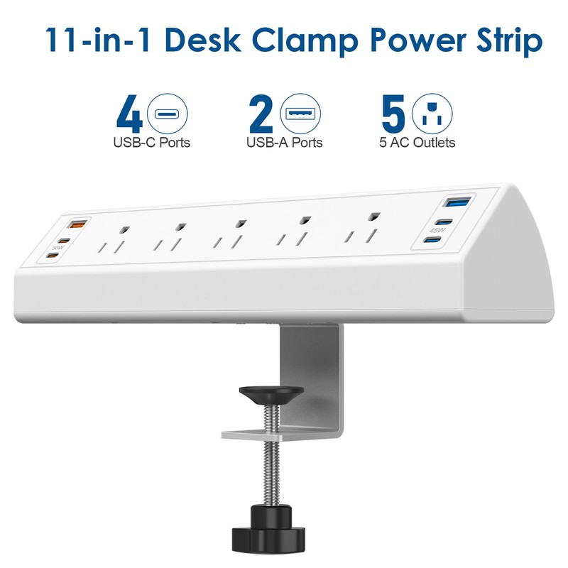- Desktop Power Strip with USB Ports: This edge mount power strip features a clamps to easily mount to desks, tabletops and more for secure desk organization and tidy workspace.