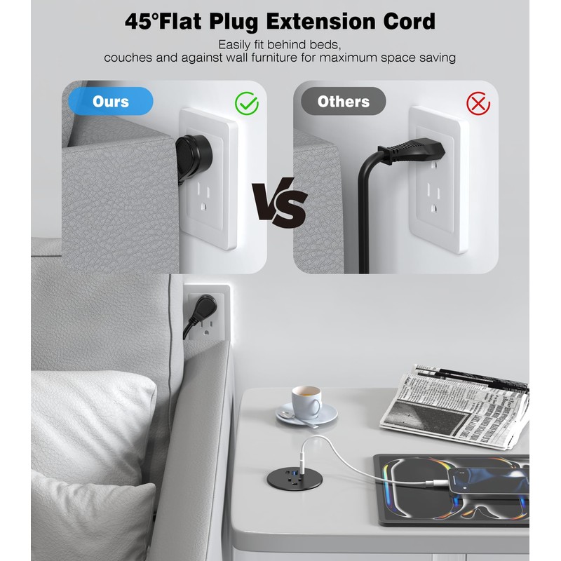 - Easy Installation: Simply drill a 2.5-inch hole in your desk or use an existing one, insert the outlet, and secure it with the included locking ring.