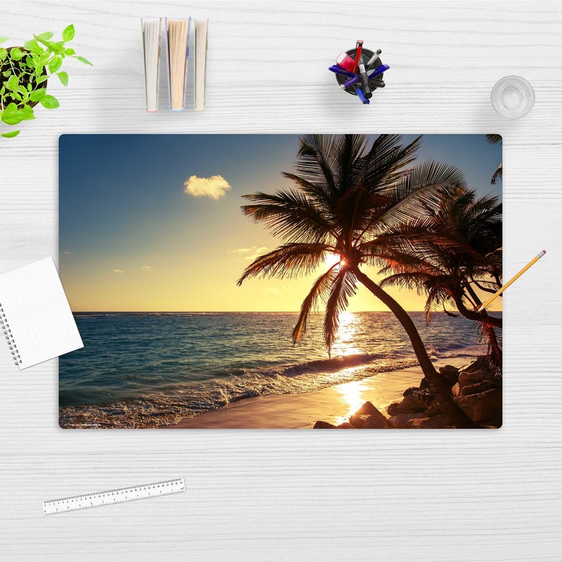 Desk Mat for Children and Adults - "Palm Trees on the Beach" - Made of Premium Vinyl (Plastic) - 60 x 40 cm - Non-Slip Desk Mat with Best Protection - Made in Germany