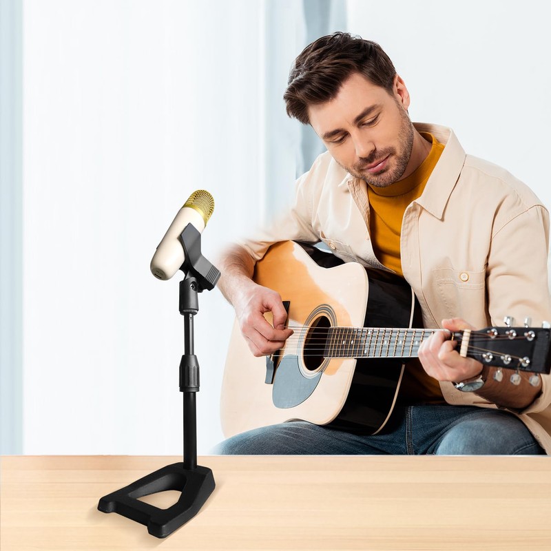 Desk Mic Stand - Upgraded Adjustable Table Microphone Stand with Mic Holder - 5 to 10 inch