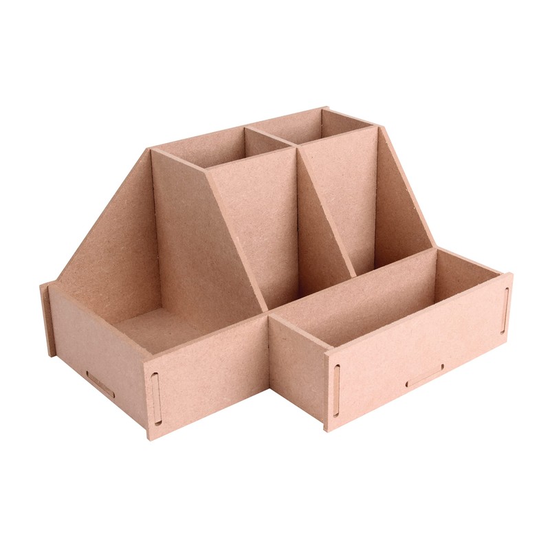 Practical desk organiser with 6 compartments. Simply put together and for stabilisation, we recommend gluing the individual parts.
