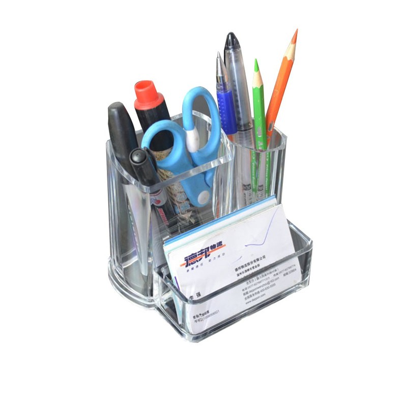 Desk Organizer, Pen Holder, Pen Stand, Stationery Case, Tabletop Storage, Clear, Stylish, Trinket Holder, Multifunctional, Plastic (A)