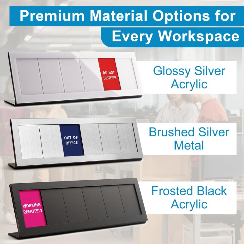 - 【Modern, Freestanding Design】This all-in-one office sign requires no installation—just place it on any desk, table, or counter. The minimalist design, paired with a stylish base, blends well in both professional and home office settings.