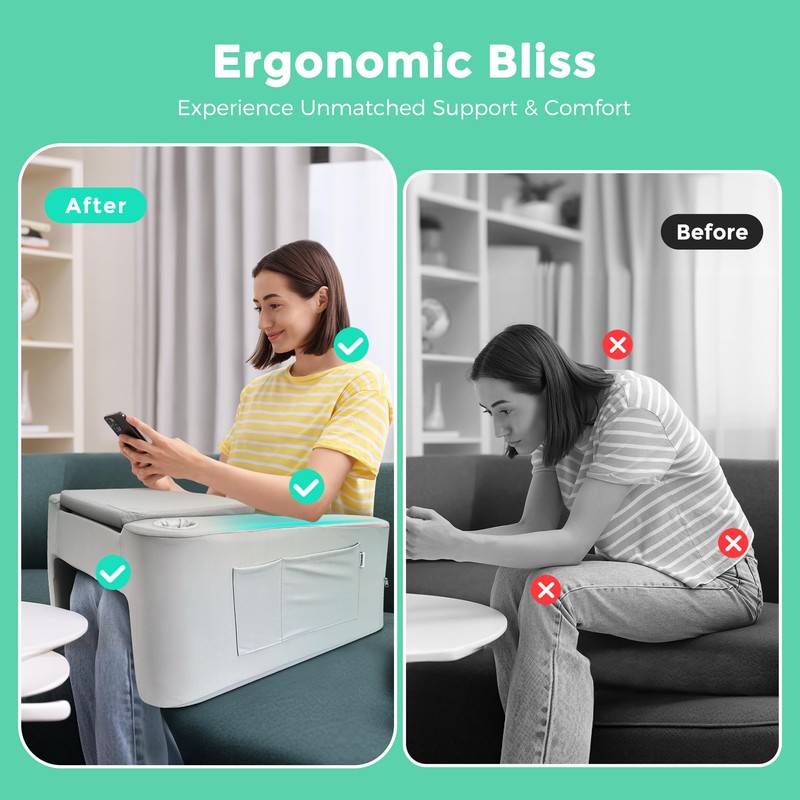 - SMART STORAGE & ORGANIZATION | Never lose your essentials in the couch cushions again. Our arm rest pillow features spacious side pockets, perfect for storing your books, Kindle, tablet, remote controls, and other reading accessories. Everything stays neat, organized, and within easy reach, making it a true bed accessory.