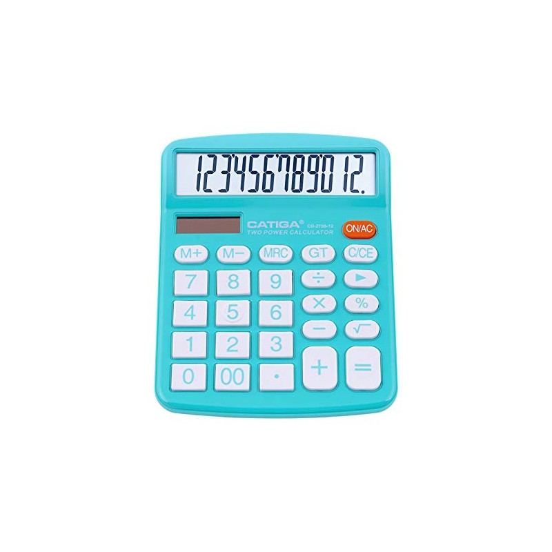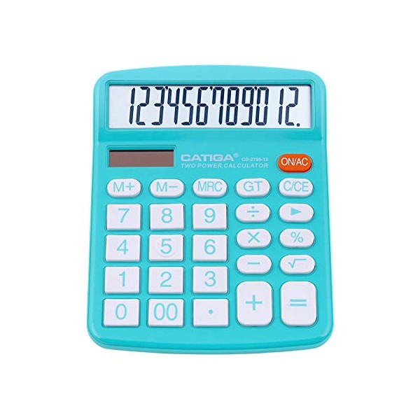 Desktop Calculator 12 Digit with Large LCD Display and Sensitive Button, Solar and Battery Dual Power, Standard Function for Office, Home, School, CD-2786 (Light Blue)
