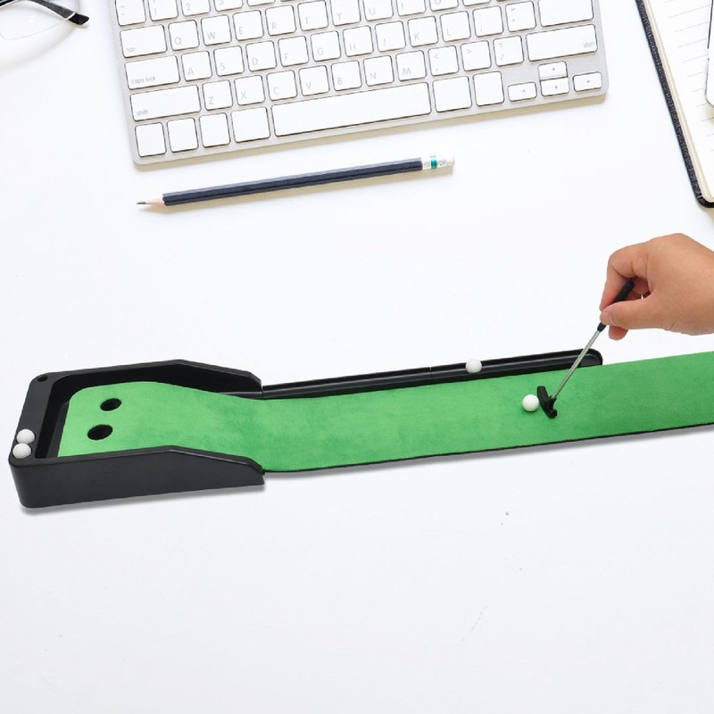 - [VERSATILE AND PORTABLE TRAINING SOLUTION] Compact yet effective, this complete putting set includes everything needed for indoor golf practice: 1 practice mat, 1 mini club, 4 balls, and 2 tracks. Easy to set up in living rooms, offices, or dormitories, it's for family fun, office breaks, or serious training. The complete package makes an excellent gift for golf enthusiasts.