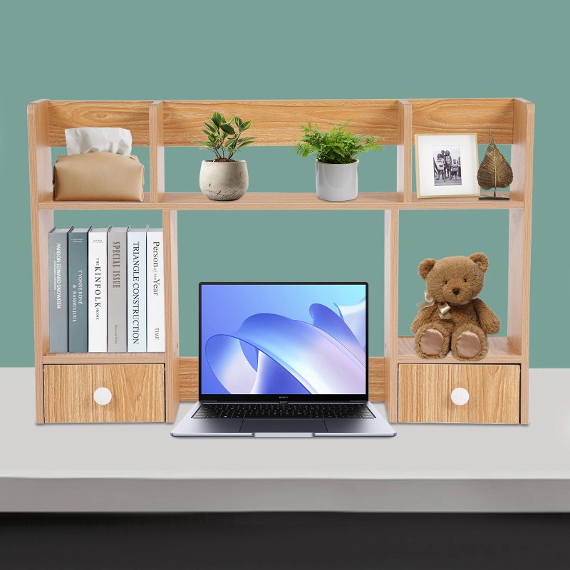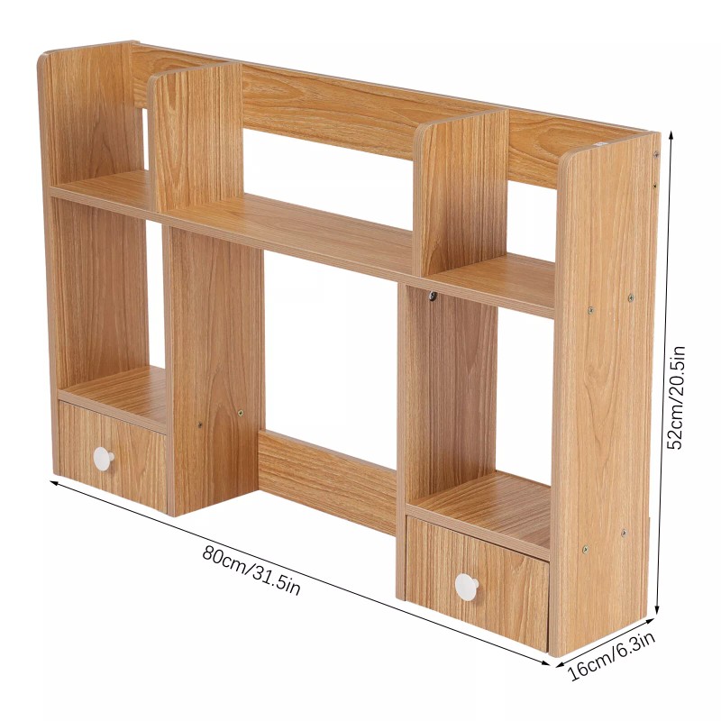 Desktop Storage Organizer Display Shelf Rack with 2 Drawers Desk Bookshelf Dorm