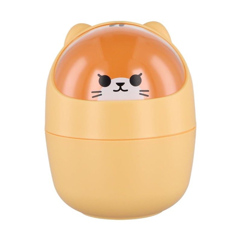 Desktop Trash Can with Lid, Cute Mini Desk Bin, Plastic Garbage Bin for Office Bedroom, Small Cartoon Bear Flip-Type Dustbin, Removable Pen Holder (Orange)
