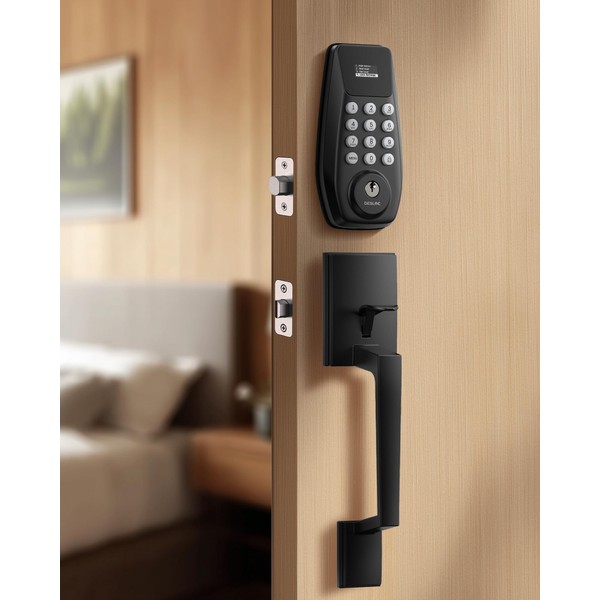 DESLOC C100 Keyless Entry Door Lock with Handle Set &Display, Keypad Deadbolt with Screen, Auto Lock, 100 PIN Codes, Passage Mode, IP54 Waterproof, 12 Months Battery