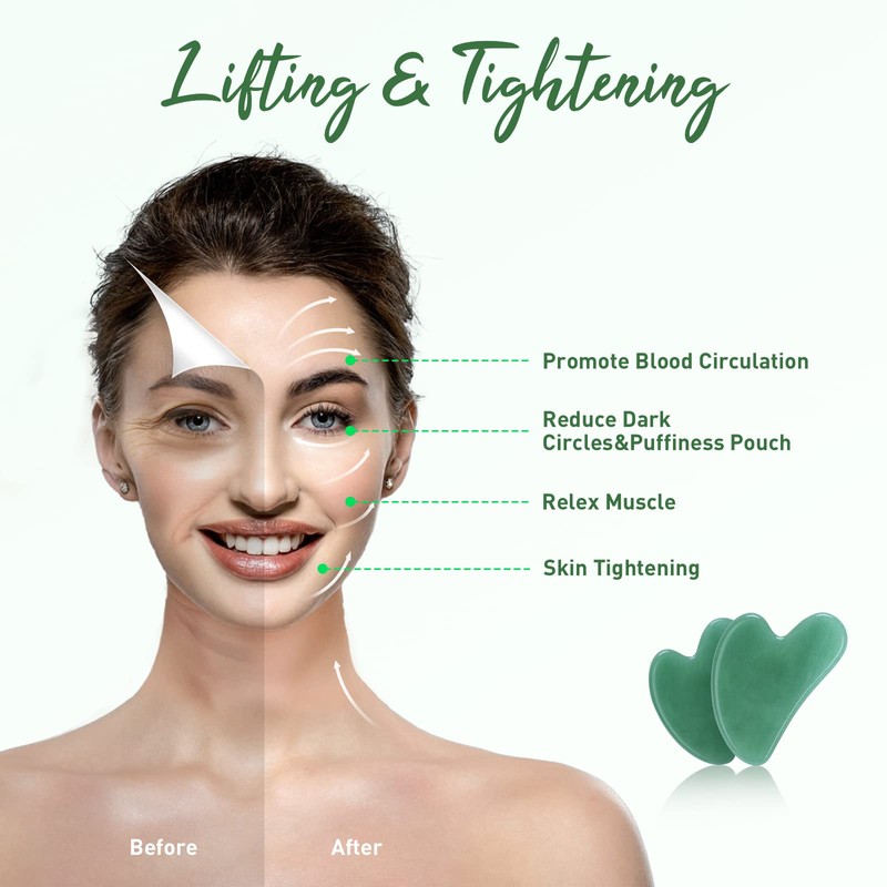 - ♥ Great Facial Tool: Using Guasha tool on you face will reduce the puffiness and help promotes blood flow and helps clear pores while the coolness reduces wrinkles and seals in moisture. It also work on wrinkles and lift and firm you skin, make your face younger and more elastic.
