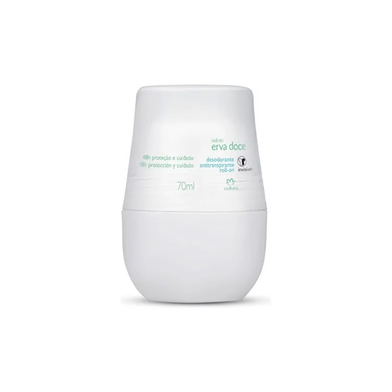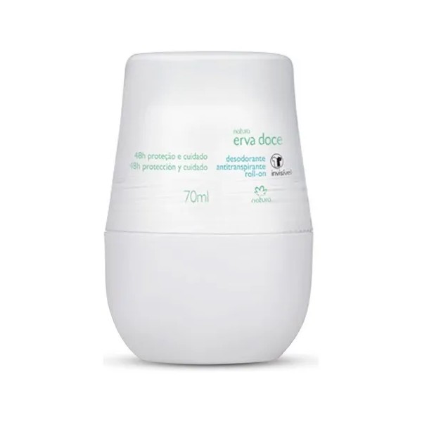 Desodorante Antitranspirante Roll-on Natura Erva Doce 75ml. Proporciona protección eficaz contra el sudor y el mal olor por hasta 48 horas. Su fórmula suave, enriquecida con vitamina E y agentes hidratantes, cuida la piel de las axilas incluso después de la depilación. Ofrece una fragancia fresca y herbal característica de la línea Erva Doce, ideal para uso diario. No deja manchas en la ropa y es adecuado para todo tipo de piel. Presentación en envase roll-on de 75 ml, práctico y fácil de aplicar