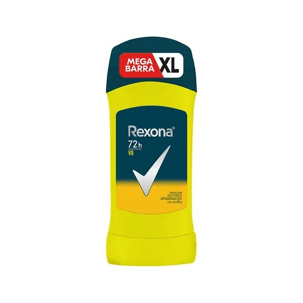 Descripción Limpia: Desodorante Rexona Megabarra V8 72h, diseñado para mantenerte fresco y protegido durante todo el día.