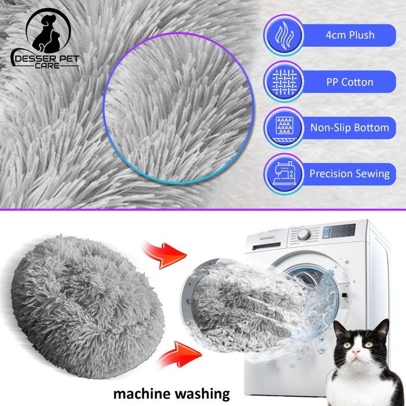 Desser Pet care 16-Inch Round Washable Dog Beds | Anti-Anxiety Small Pet Furniture | Soft Calming Donut Bed | Fluffy Plush Material | Anti-Slip Bottom Small Puppy Essentials
