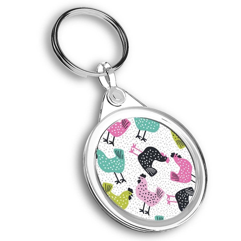Destination Vinyl ltd 1 x Round Photo Keyring Colourful Chickens Pet Chicken |Keychain|Keyring|Charm| #170504