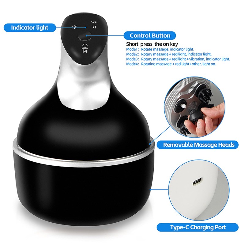 - 4 Massage Modes and Heating Function: The hair massager scalp and body massager tool growth has 4 modes, from gentle to deep kneading massage, adjusting the intensity according to your needs, helping to relax the head and soothe the body