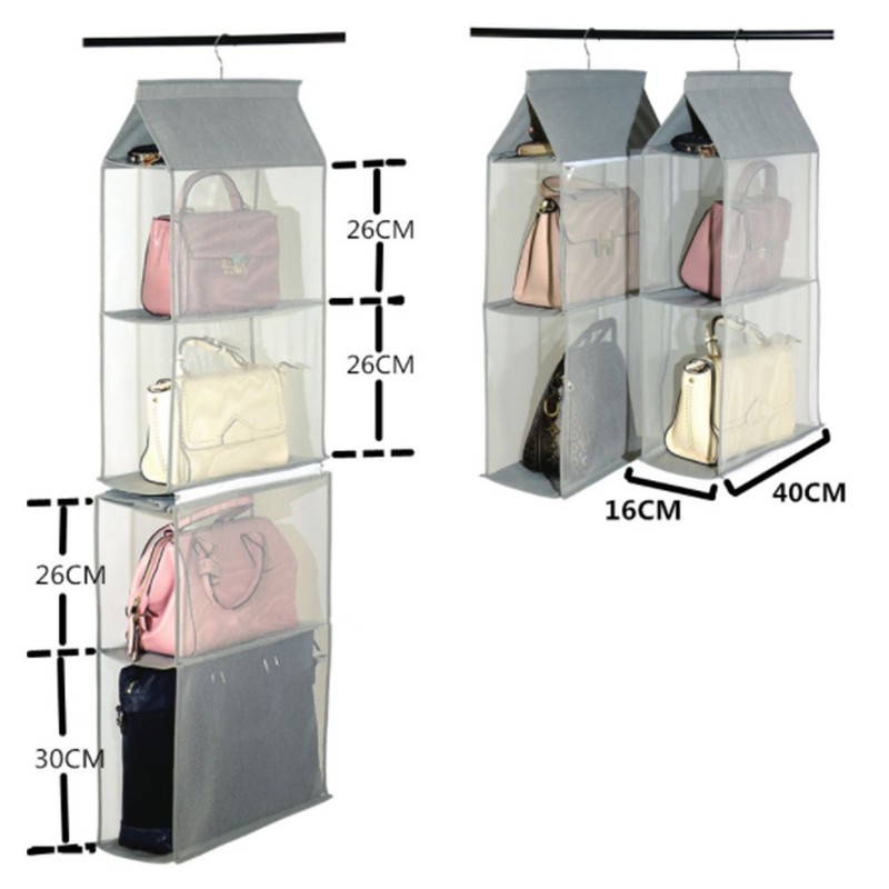 - IDEAL FOR ALL TYPES STORAGE -- It’s convenient and adequate Max 6 compartments offer to store different items separately, store anything from adult handbag,shoes,purses,sweaters to baby clothing,toys. The perfect solution to organiz handbag, purse from large to small in your closet, keep bags damage free. Keep your wardrobe clean and tidy.