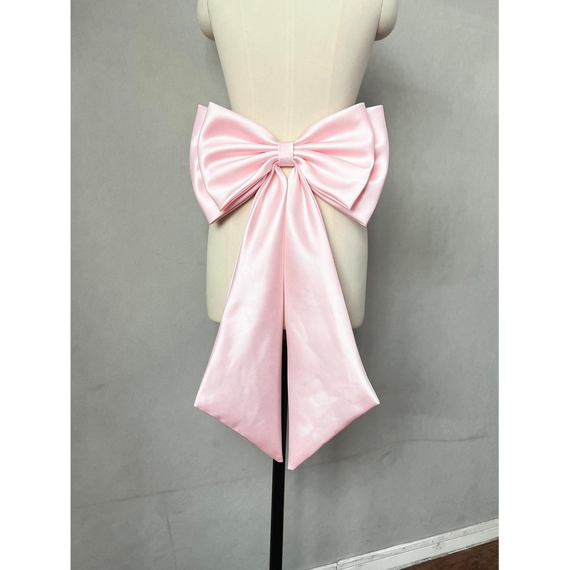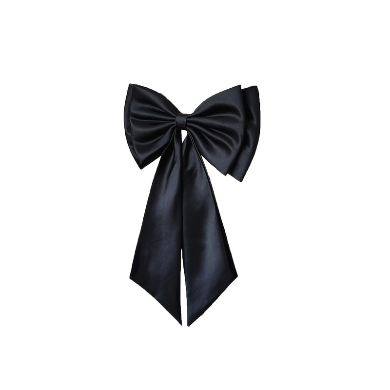 Detachable Satin Bow for Wedding Dress Bowknot with Irregular Tulle Tail, Black-satin Tail, One Size