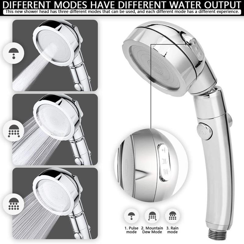 A New Generation of Hand Showers,Laser-Punched Nozzles Give the Shower A New Way to Experience It.Shower Head,High Pressure Water Saving 3 Mode Function Spray with 1 Button to Stop / Spouting Handheld Showerheads for Dry Hair and Skin SPA.