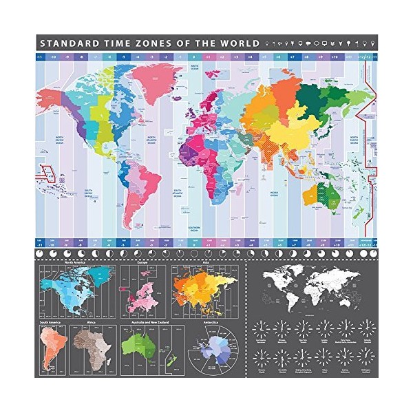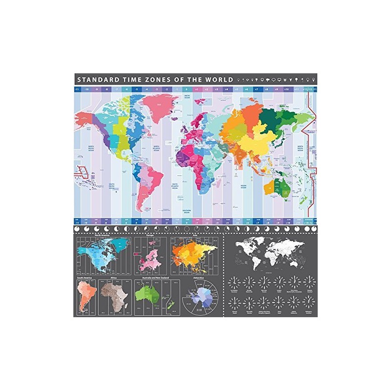 Detailed World Map with Timezones - Wall Poster - 33cm x 33cm (13 x 13 inches); High Colour Poster Printed upon a Heavyweight (250gsm) Matt Poster Paper; A Quality Licensed Image; Shipping, Carefully Rolled and Dispatched in a Crush Proof Postal Tube; Makes an ideal gift for that special person; Order before 2 pm for same day Dispatch from our UK Warehouse. A Quality item that Carries our 100% Customer Satisfaction Guarantee, or your money back!