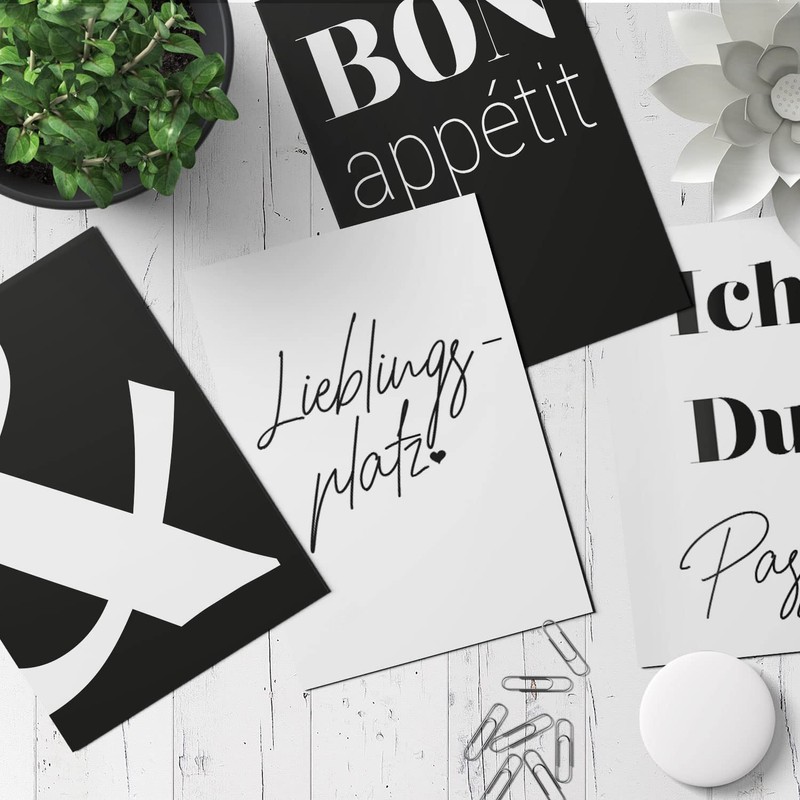 #detailverliebt Set of 20 postcards in black and white with personal sayings,...