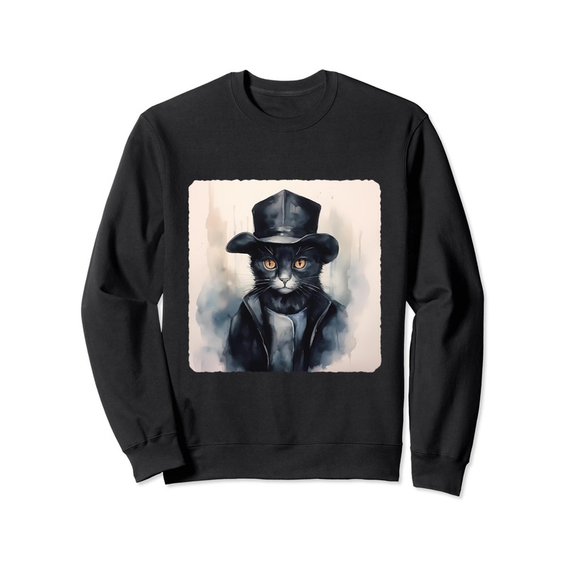Detective Hat, Cat Detective In Noir Style Hat, Noir Cat Sweatshirt