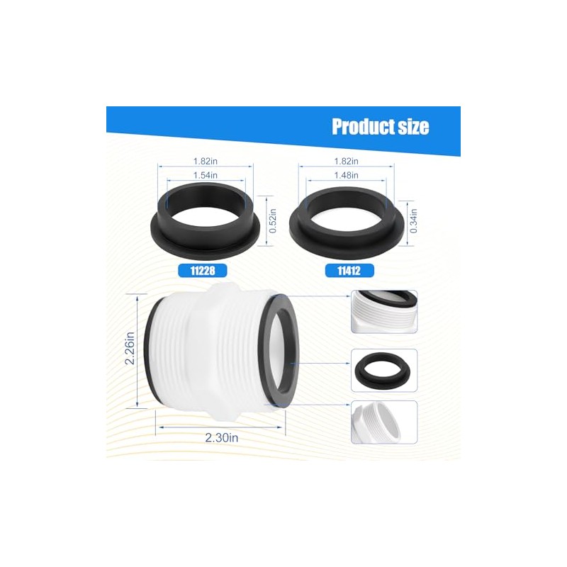 - 【Sealing】 Come up with 11228 & 1141 L-Shape O-Ring Gaskets,the for Intex pool hose connector with perfect sealing,no worry about leaking,8 rubber gaskets to replace