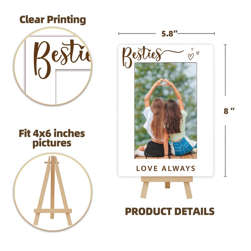 DETIHO 4x6 Photo Frame, Small Wooden Picture Frame with Easel Stand, Besties Love Always Frame Friendship Gifts for Home Decor Tabletop Display, Vertical-A19
