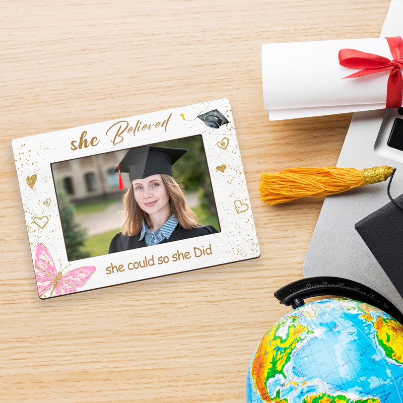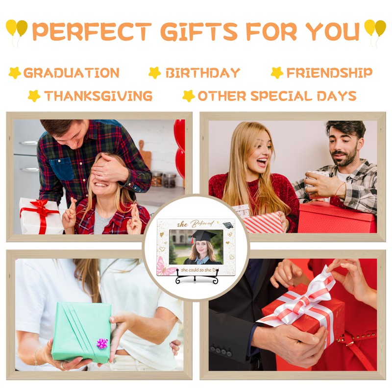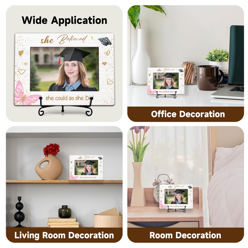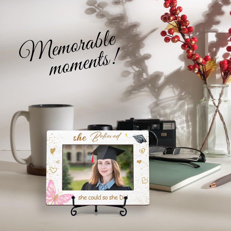 DETIHO Graduation Picture Frame Class of 2025, Photo Frames 4x6 with Iron Stand, Congrats Grad Gifts for Her - She Believed She Could So She Did H09