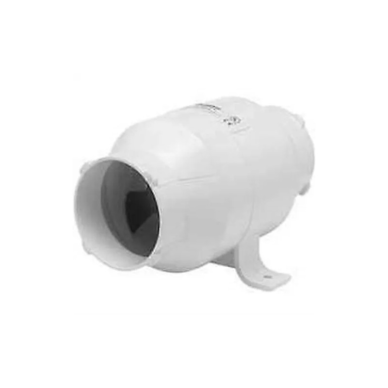 Tunnel blowers for galley, head or the engine compartment ventilation. Capacity range 138 CFM (3.97 CuM/Min) for the 3" intake, and 3" exhaust model to 223CFM (6.32 CuM/Min) for the 4" intake, 4" exhaust model. All are ignition protected, NMMA approved and meet USCG Safety Standards. A rigid one piece molded plastic impeller provides balanced, vibration free performance. 12V. Display cartoned.