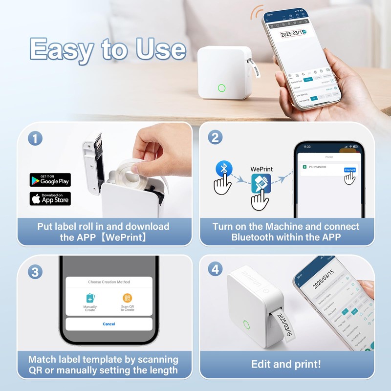 Compact and Portable: This P0 mini label printer weighs just 140g and has compact dimensions of 81*81*30mm, making it easy to slip into your pocket or bag. It provides high-quality printing service wherever you go, perfect for home, office, or school use.