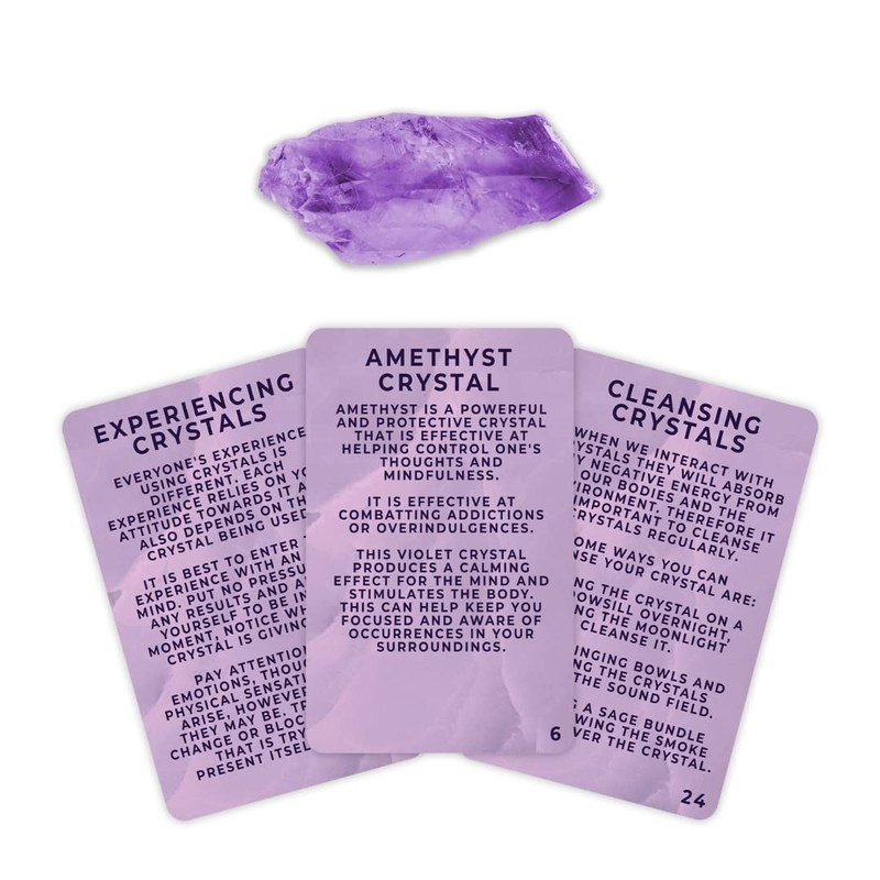 Detox Healing Crystal + 25 Guide Cards - Amethyst Crystal - Learn & Detox