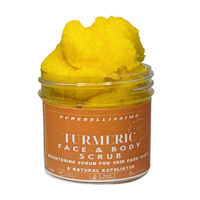 - 🍃100% oil-free, with No additives, synthetics, or artificial fragrances🍃. Our Turmeric brightening face & body scrub works on All skin types. It helps heal dry skin, damaged skin, aging skin, stressed skin, uneven skin, acne-prone skin.