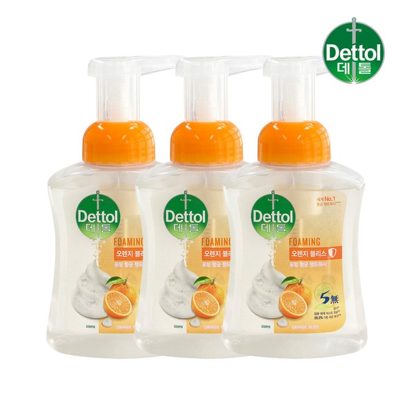 Dettol Antibacterial Foaming Hand Wash Orange Container 250ml x 3 / 데톨 항균 포밍 핸드워시 오렌지 용기 250ml x3개