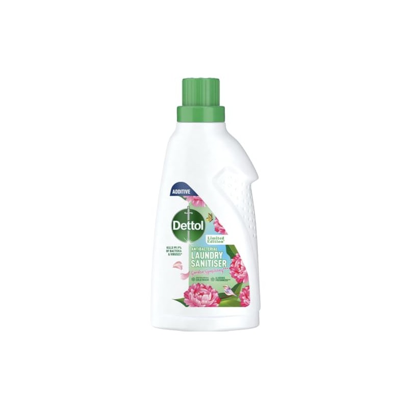 Product descriptionElevate your laundry routine with Dettol Antibacterial Laundry Sanitiser in Spring Blossom scent. This 750ml bottle of powerful sanitiser eliminates 99.9% of bacteria, giving you peace of mind with every wash. Perfect for use in both hot and cold water, it's an ideal addition to your laundry regimen, ensuring your clothes, towels, and linens are hygienically clean and infused with a fresh, floral fragrance.IngredientsAntibacterial action - Dicapryl/Dicaprylyl Dimonium Chloride Benzalkonium Chloride Freshness - fragrance Helpers - Water, C12-C14 Pareth 7, Sodium Bicarbonate Powder, Sodium Carbonate, Dye Free from - Bleach