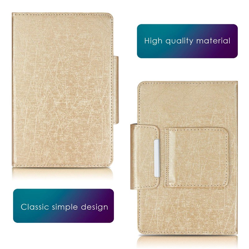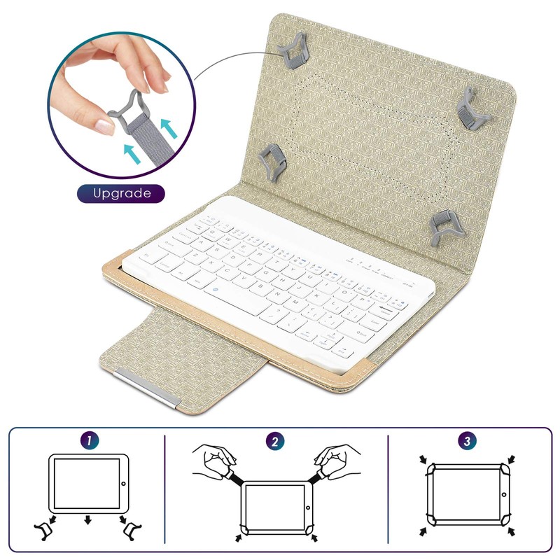 - đ»ăUPGRADE MATERIALă-7 inch Android tablet keyboard case made of folio durable synthetic leather exterior and 4 corners with upgrade elastic pull-loop buckles, which can firmly fix the tablet without falling and shaking. Tablet 7" cover shell allows easy access to all buttons, controls & ports no need to remove the case. (Tip: the universal case doesn't have rear camera hole)