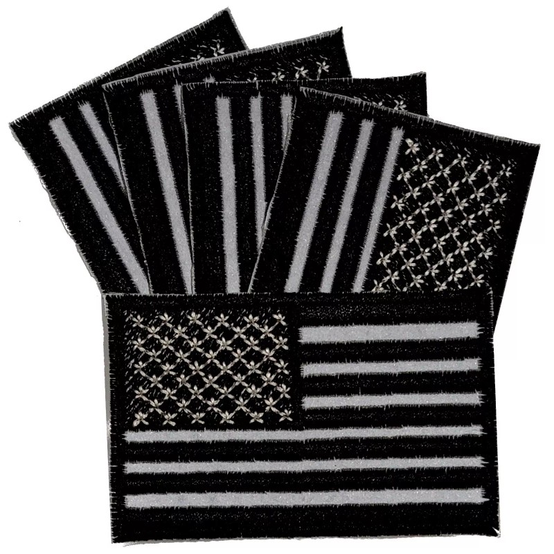 DEURA 5US ARMY NIGHT BLACK Reflective AMERICAN FLAG Iron on Patch Biker Vest REFLECTOR