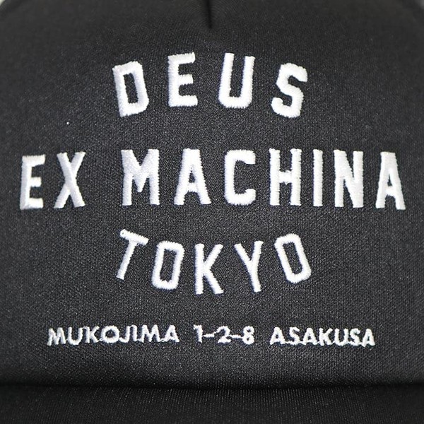 - Deus Ex Machina Classic Mesh Cap Solid fabric curved visor The design is based on the Tokyo shop address. Luxurious embroidery