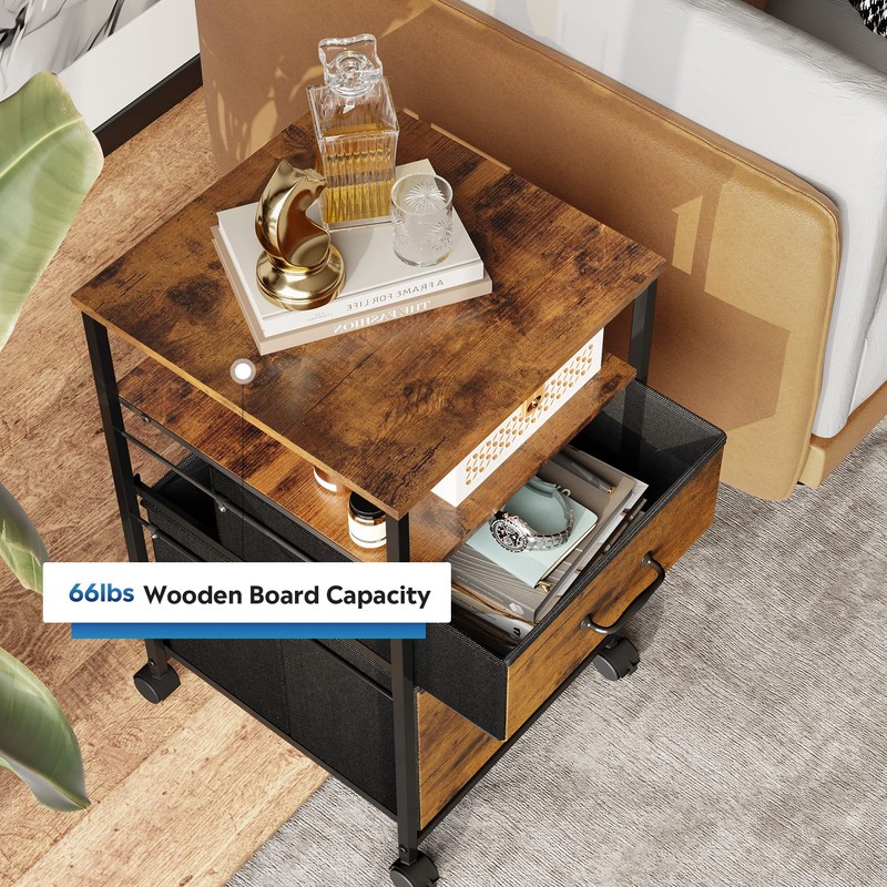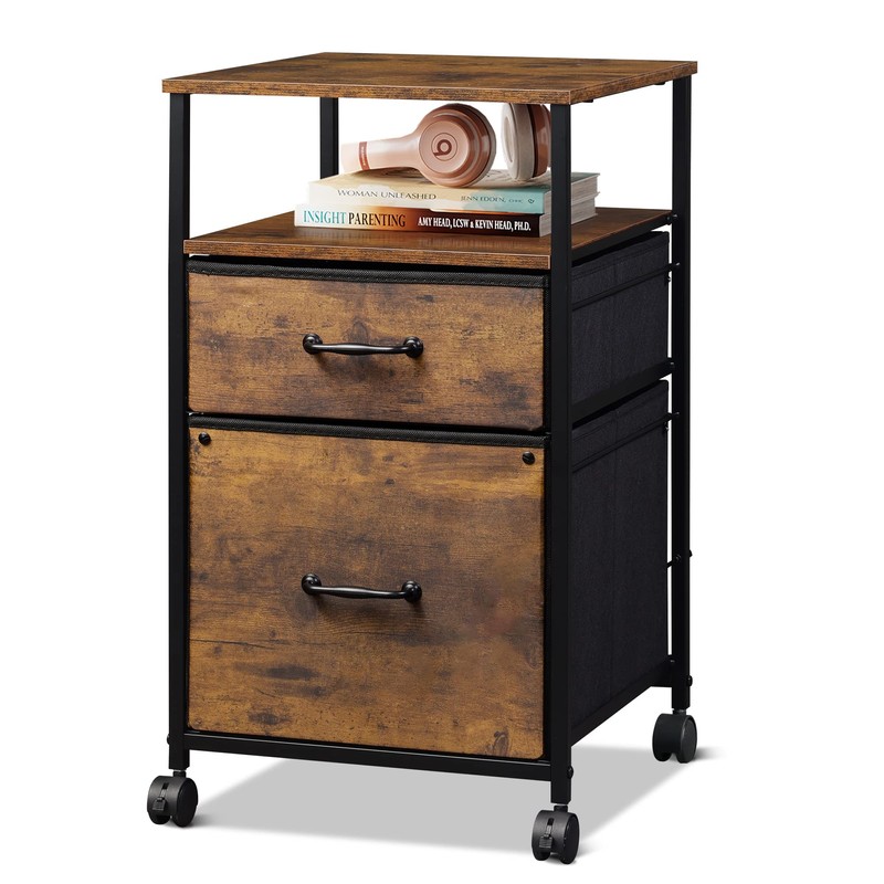 - Easy to Move: Rolling on 4 wheels, this mobile file cabinet can fix or move around your home office freely. Built-in brakes on front 2 casters to keep it in position and add stability. Unique fabric drawer design makes it only weigh 22 lbs. and light to move.