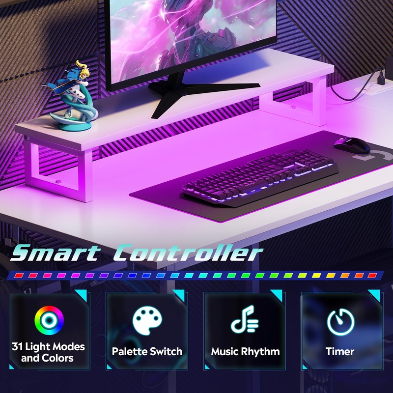 - Smart LED Lights: You can control 31 lighting modes and 60,000 colors via the app. Adjusting to proper lighting can reduce eye strain, improve focus, and create a comfortable workspace or gaming environment.