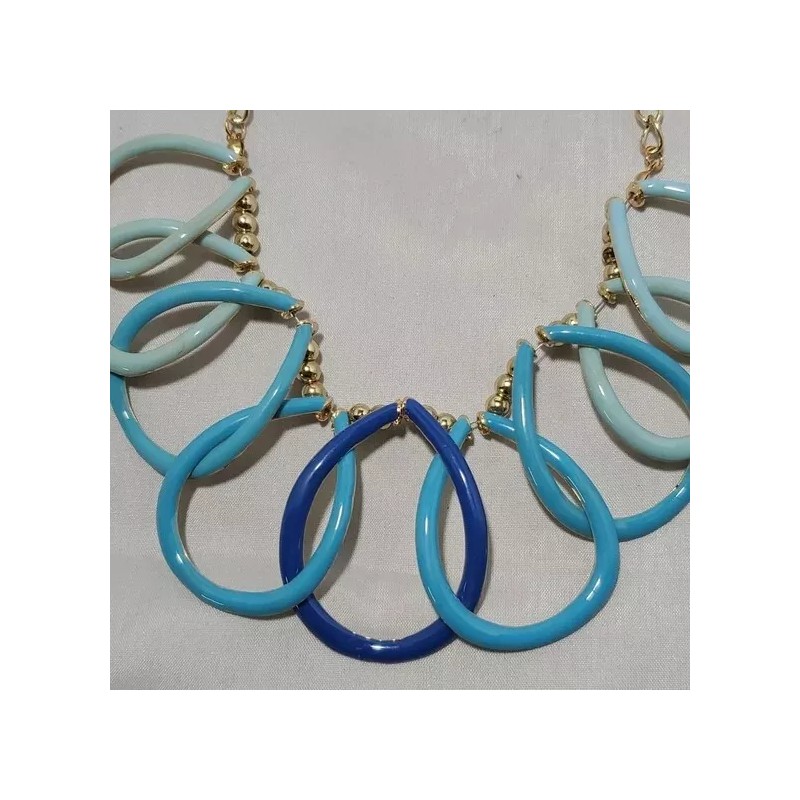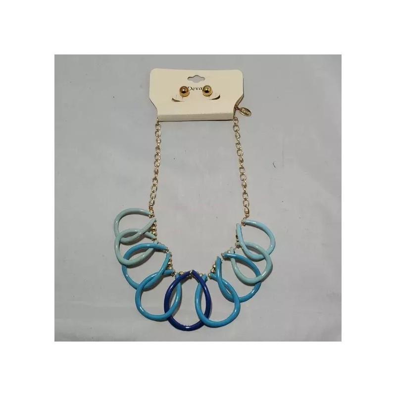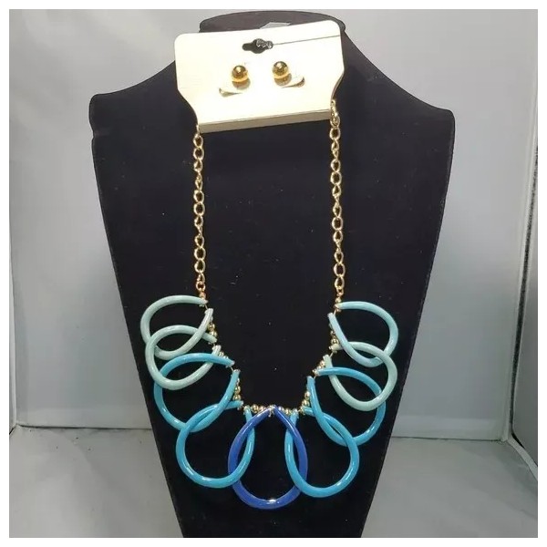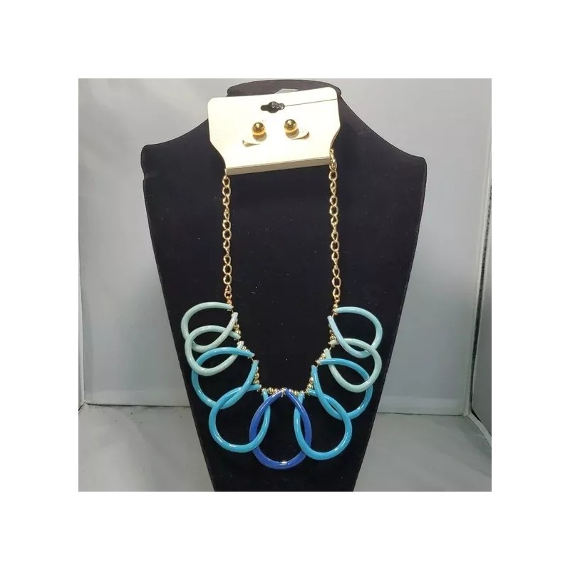 Devan aqua blue gold metal chain necklace and earing set NWT
