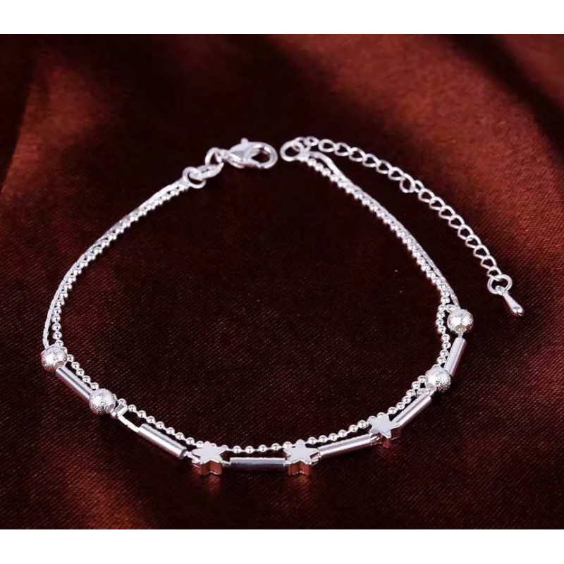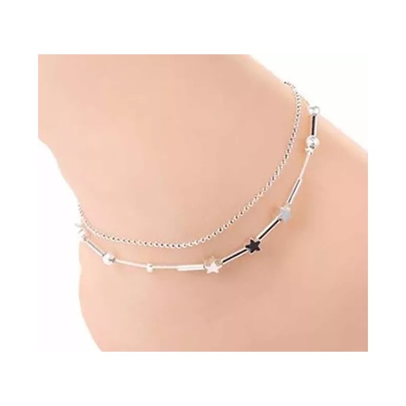 Devastating Designs 2 Pcs 925 Sterling Silver Womens Linked Stars 8.5" - 10.5" Anklet Bracelet D613