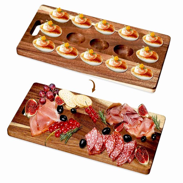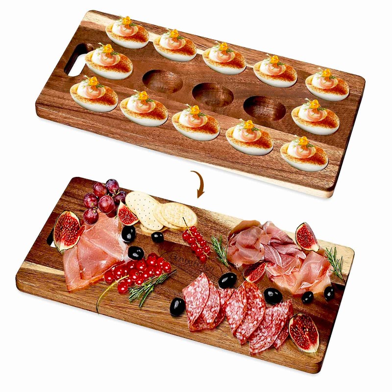 - 1.【Versatile And Multipurpose Design】 Crafted For Functionality And Elegance, This Reversible Deviled Egg Holder Seamlessly Transitions Into A Charcuterie Board, Pizza Board, Or Cheese Board, Offering Exceptional Versatility For All Your Serving And Preparation Needs.
