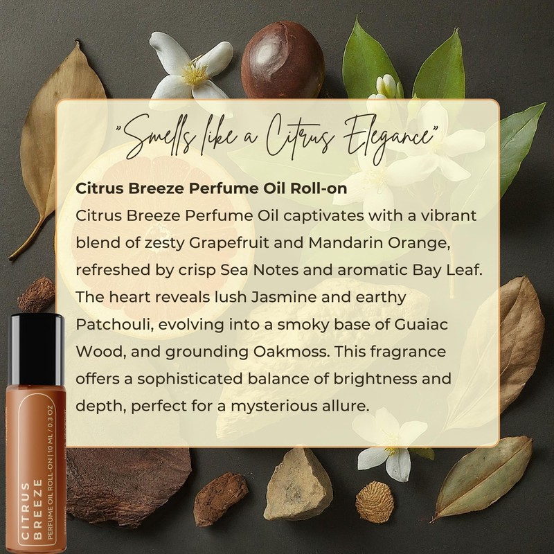 - What Are The Notes of Citrus Breeze Fragrance Oil Perfume Roll-On: Top-Note: (Aqua), Mid-Note: (Jasmine), Base Note: (Patchouli).