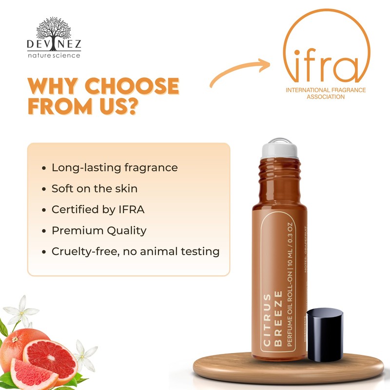 Devinez Citrus Breeze Fragrance Oil Perfume Roll-On 10ml (Pack of 1) Alcohol-Free, Long-Lasting, Unisex, Travel-Size Perfume Roll On for Everyday Use (IFRA Certifed)