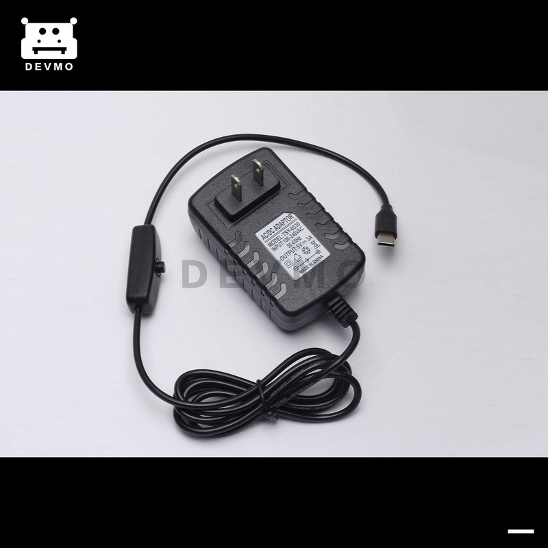 DEVMO Raspberry Pi 4b Fuente de alimentación, adaptador de CA 5V 3A USB-C C con cargador de botón de interruptor para Rasberry Pi 4 Generación
