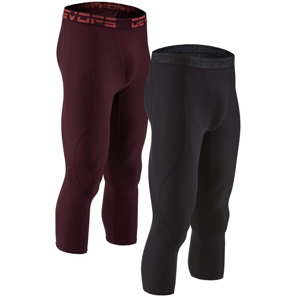 DEVOPS 2 Pack Men's 3/4 Compression Pants Athletic Leggings (Small, Black/Brick)
