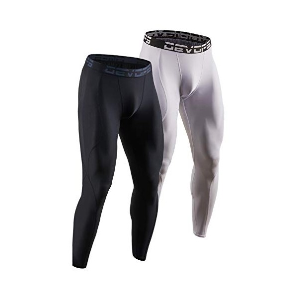 DEVOPS 2 Pack Men's Compression Pants Athletic Leggings (2X-Large, Black/White)