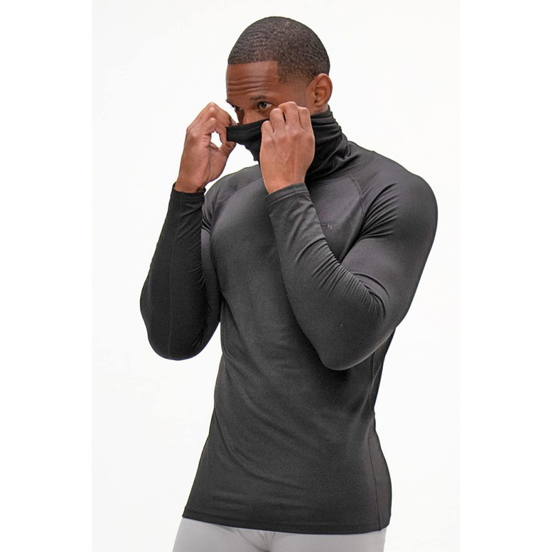 DEVOPS 2 Pack Men's Thermal Turtle Mock Neck Shirts, Compression Long Sleeve Tops (2X-Large, Black/Light Gray)