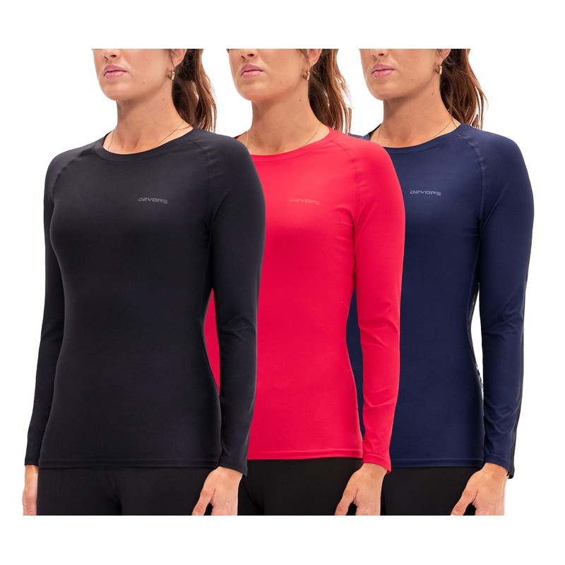DEVOPS Women's Compression Long Sleeve Athletic Shirts (Large, Black/Red/Navy)