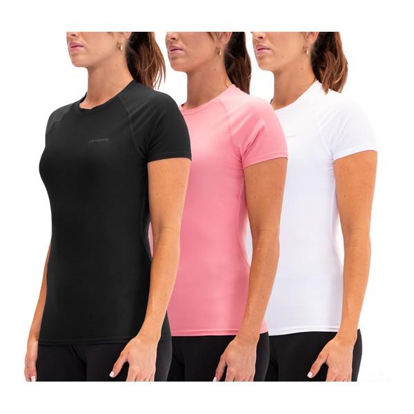 DEVOPS Women's Compression Workout Athletic Shirts (Medium, Black/Pink/White)